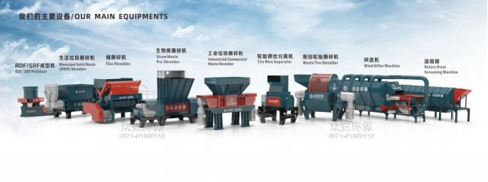 30多種單機設備:雙軸剪切式破碎機、單軸撕碎機、液壓剪切破、液壓粗破碎機、四軸剪切式破碎機、移動(dòng)式固廢破碎站、廢舊輪胎鋼絲分離機、輪胎造粒機、輪胎磨粉機、風(fēng)選機、蝶形篩、滾筒篩等