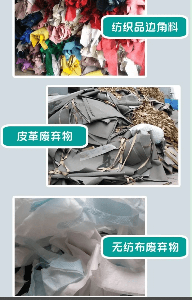 輕工業(yè)生產(chǎn)工程中產(chǎn)生的邊角料以及固體廢棄物的處置方式進(jìn)行簡(jiǎn)單的介紹,主要處理的物料包含:紡織品邊角料,皮革廢料,無(wú)紡布邊角料等同類(lèi)型的輕型物料。